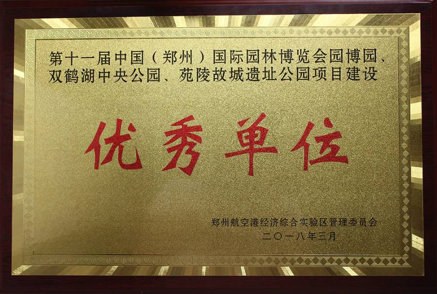 綠建景觀設計工程有限公司榮獲第十一屆中國(鄭州)國際園林博覽會雙鶴湖中央公園優秀建設單位稱號