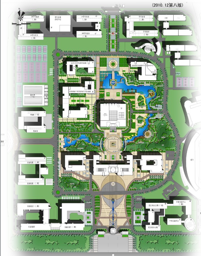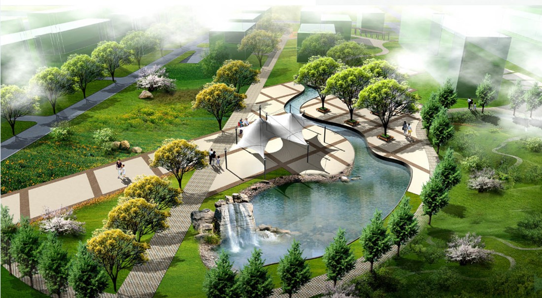 在設計總體布局中尊重場地現狀,環境上以“一軸一環一帶,五區十景”為景觀骨架。通過對基地特征的挖掘分析,運用現代景觀設計與中國傳統造園手法,汲取江南園林的景觀精髓,師法自然,疊山理水,達到“雖由人作,宛自天開”的境界,從整體意象上構成了一湖一溪一島的水體景觀框架。該項目將古典園林造園手法與現代結合,形成了中國園林特有的山水格局,形成了宜人并充滿活力的景觀空間。