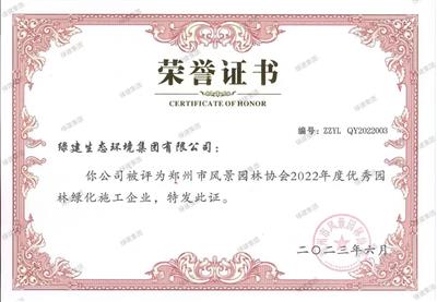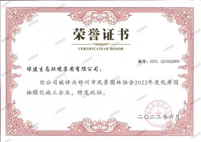 2022年度鄭州市風景園林協會優秀園林綠化施工企業