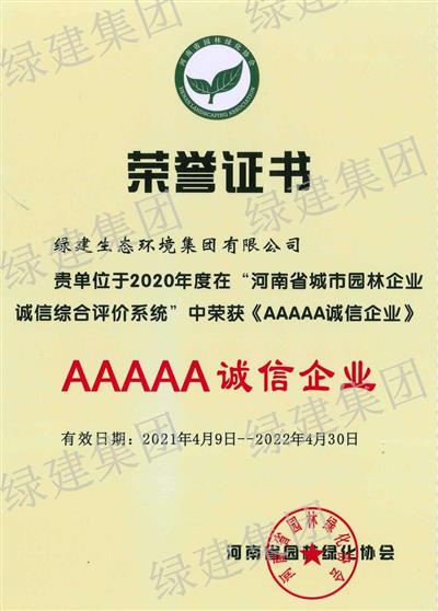 2020年度鄭州市建筑施工總承包AA級