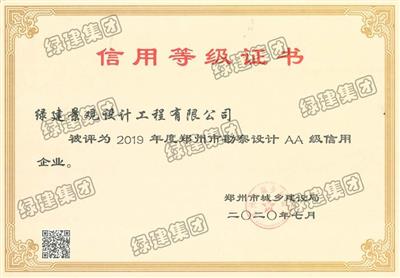 2019年度鄭州市勘察設計AA級信用企業