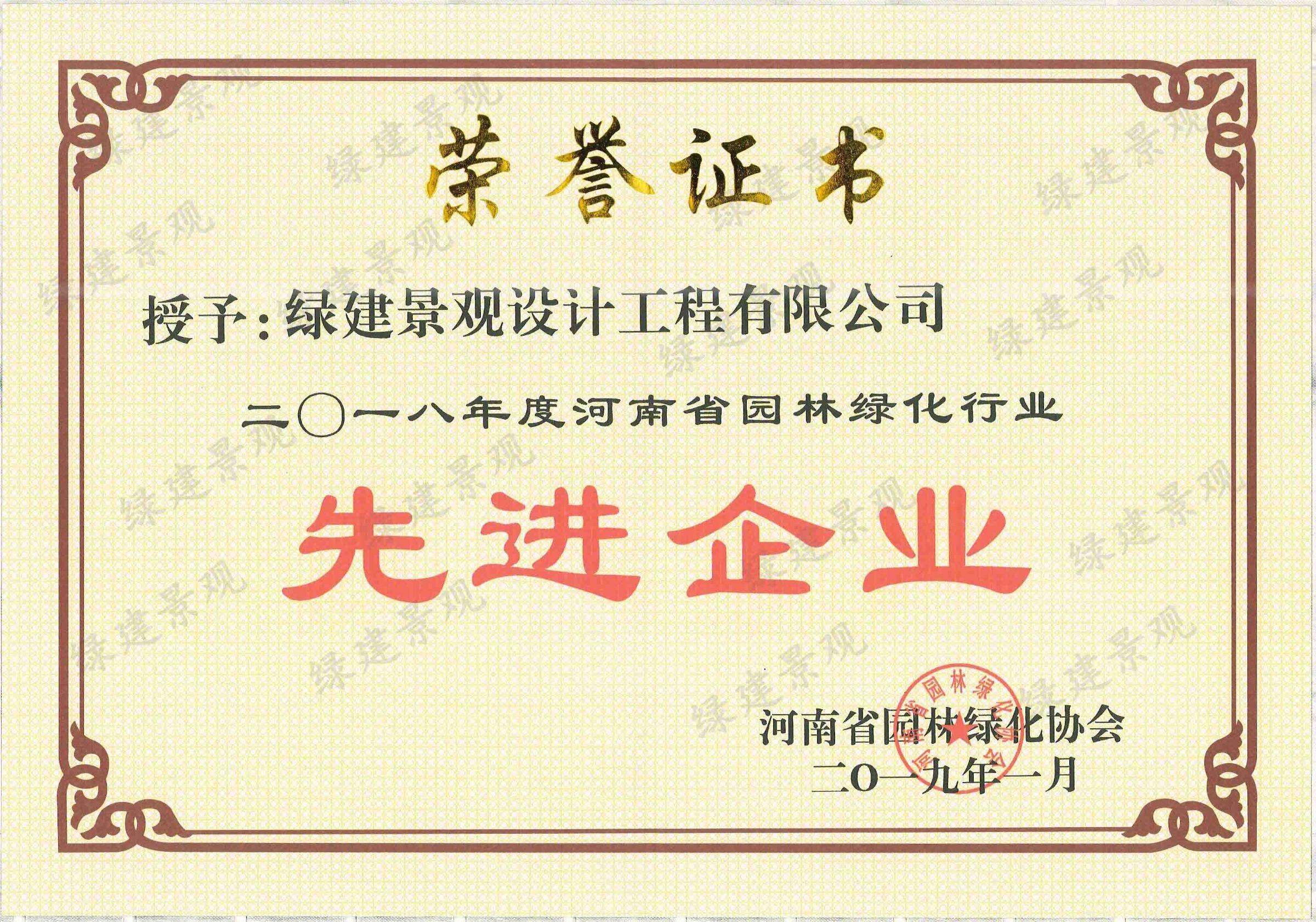 2018年度河南省園林綠化行業(yè)先進(jìn)企業(yè)獎