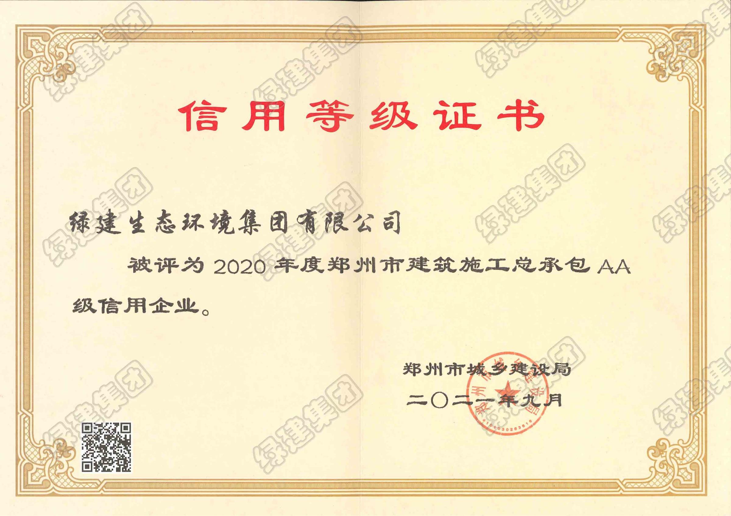 2020年度鄭州市建筑施工總承包AA級
