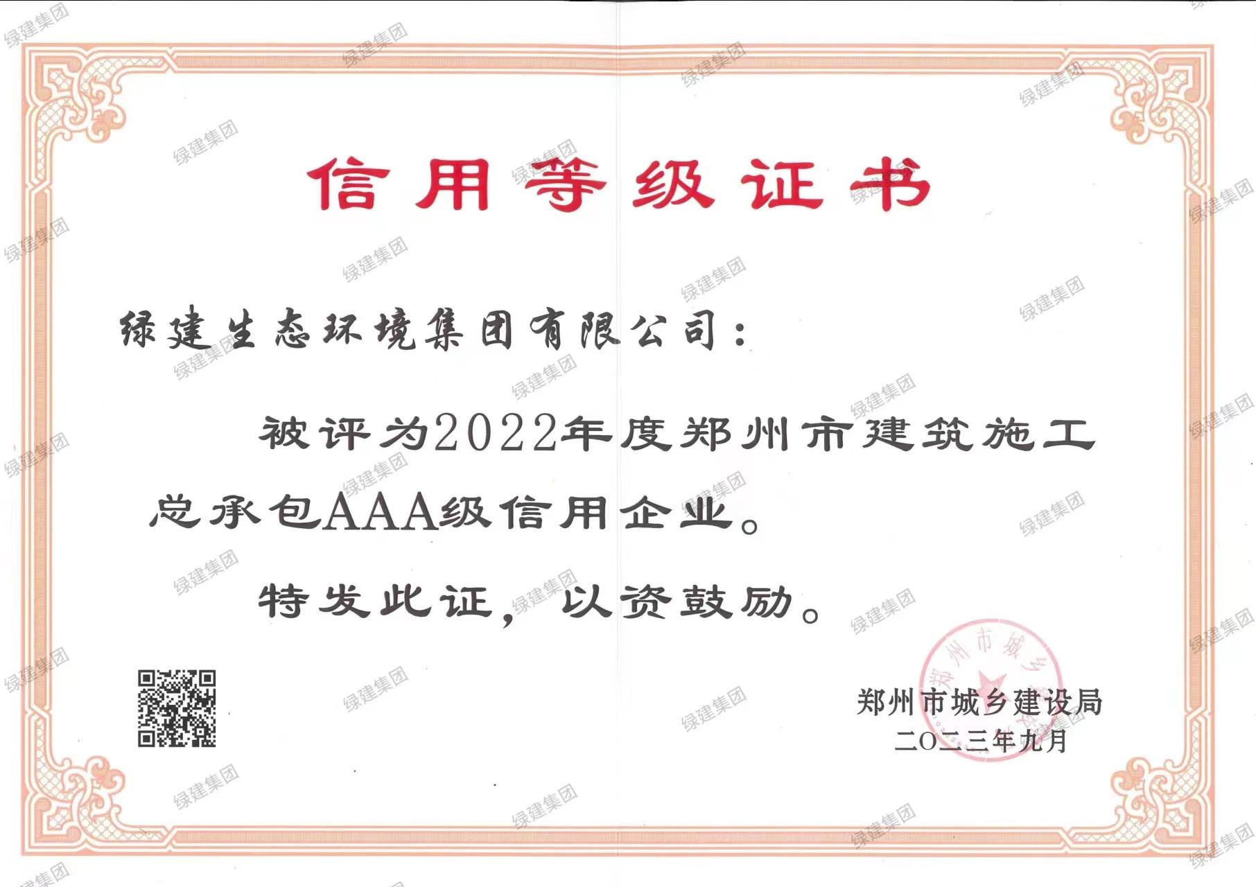 2022年度鄭州市建筑施工總承包AAA級信用企業-鄭州市城鄉建設局(1)